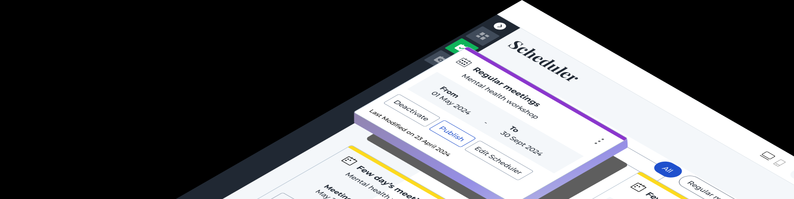 | Leave or reschedule on specific dates | Calendar preview with color codes helps manage such exceptions. |